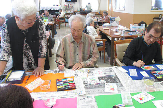 | 10:00 | 朝のあいさつ・入浴・自由時間・個別リハビリテーション …ご利用者に合わせた手芸やゲームなど楽しんで頂きます。入浴は一般浴になります。 |