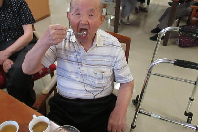 また、食事にも力を入れており、管理栄養士と厨房が一体となり栄養バランスを考えた献立を立案し、美味しい食事を提供出来るよう努力しています。毎月行っているイベント食では高齢者の方に人気の寿司のバイキングや面前提供(利用者の目の前で料理を行い、できたてのあつあつ料理をご提供するサービス)を行っており大変人気が高いです。